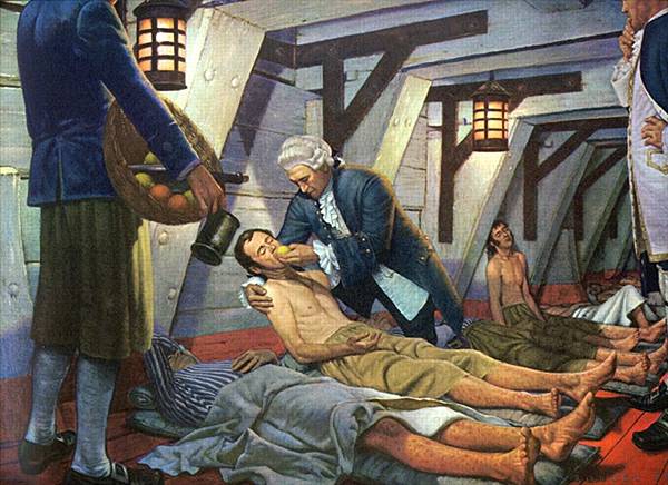 到了1795年在英國政府強制推動下,所有海軍出航都必須每人每天配給服用三分之二盎司的檸檬汁,因為檸檬中含有大量的維他命C,從此大幅降低壞血病所引起的致命海軍疾病。直到1912年波蘭裔美國科學家發表了維他命理論後,才把這種抗壞血病的酸性結晶命名為「維他命C」。